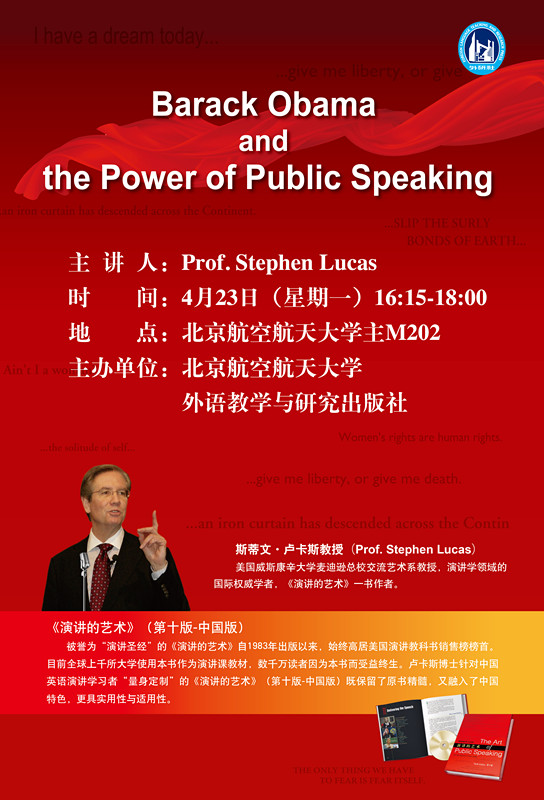 美国威斯康辛大学艺术系Stephen Lucas教授“公共演说的力量”讲座通知
