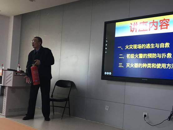 于主任通过图片、新闻报道、事故分析等方式,讲解了近年发生的多起重大火灾事故。触目惊心的画面和数字使全体参训人员受到了极大的震撼,深刻认识到了“隐患险于明火、防范胜于救灾”的重要性。于主任还结合工作和生活中用电、用气、用火的知识,详细讲解了发生火灾后的自防、自救、逃生技能,并按种类、功能、用途介绍了不同的灭火器及其使用方法。