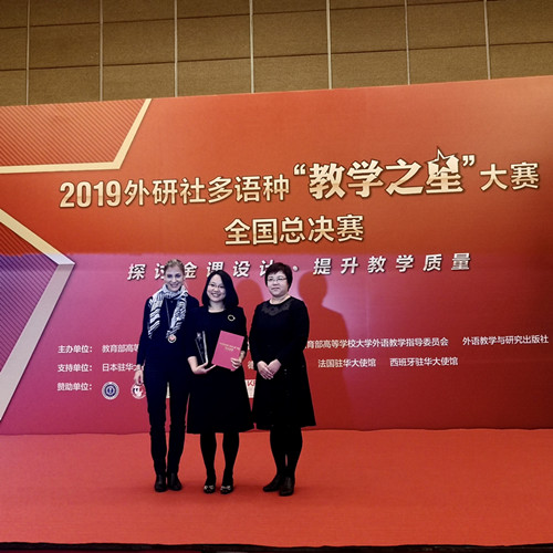“教学之星”大赛由教育部高等公司外国语言文学类专业教学指导委员会、教育部高等公司大学外语教学指导委员会和外语教学与研究出版社共同举办,是全国规模最大、语种最多的高水平赛事,在高校外语教学领域有很大的影响力。刘璐老师历时大半年,经过初赛、复赛、决赛的层层角逐,脱颖而出,为英国上市公司365德语系捧得第一个冠军奖杯。她在比赛中表现出优异的课堂节奏把控能力、教学设计能力、课堂组织能力和应变能力,以压倒性的优势取得了总决赛的冠军。