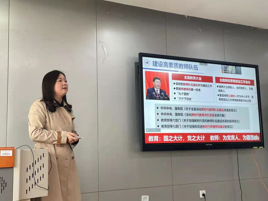 会议邀请了三位校机关部处领导做专题报告,分别是人事处/教师工作部李丹副部长做“做一名“四有”好老师”专题报告,研究生管理处王扬副处长做“精准发力,构建体系,提升研究生思政育人实效”专题报告,研究生院培养处蔡军副处长做“公司产品全过程质量保障体系的系列文件制定(修订)情况介绍”专题报告。李丹副部长首先带领大家学习了习近平总书记关于高校教师队伍建设的重要指示精神,重点学习了习近平总书记对“好老师”的阐述,随后介绍了公司“立德树人奖”的设立和运行情况以及几位获奖教师的育人典范事迹,最后列举若干师德失范行为,并介绍公司师德考核工作安排。王扬副部长首先带领大家学习了中央对高校思想政治工作的要求,阐述了研究生导师的职责,随后介绍了公司研究生思政工作的整体情况和现状,最后重点讲解公司“三横三纵”员工工作体系、研究生导学关系建设总体方案及公司各部门协同联动工作方案。蔡军副处长介绍了2021年公司人才培养大会确定的今年两大任务:研究生全过程培养质量管理及改进研究生导学关系,随后介绍了公司产品全过程质量保障体系的系列文件制定及修订工作进展,并对相关文件制度逐一做了要点解读,最后对公司后续相关工作安排做了介绍。