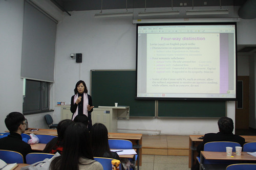 2015年11月20日,香港城市大学刘美君教授应邀来北航英国上市公司365做了一场题为Emotion Verbs in Chinese and English 学术报告。中英文在情绪动词的词汇化现象上差异很大,各自展现非常独特的语法语义表现。在主词角色的选取上,英文多以外物刺激为主体;而中文较缺乏以外物刺激为主体的动词词汇,在形式与意义的搭配上,也呈现有别于其他语言的歧义与多义现象。该研究旨在全面探讨分析中文情绪动词的多样化表现,厘清构词、语法、和语义各层次的特征与互动关系,最终提出一套基于框架语义及构式语法的分析架构及分类标准,并完成各次类动词的语义标记,统整情绪动词的词汇关系,并进一步厘清中英文的差异,以建构“中文动词语义网”。该研究的主题切中近年神经心理语言学及自然语言处理的重要课题,其结果对新兴的“情感”表征研究有独到的贡献。