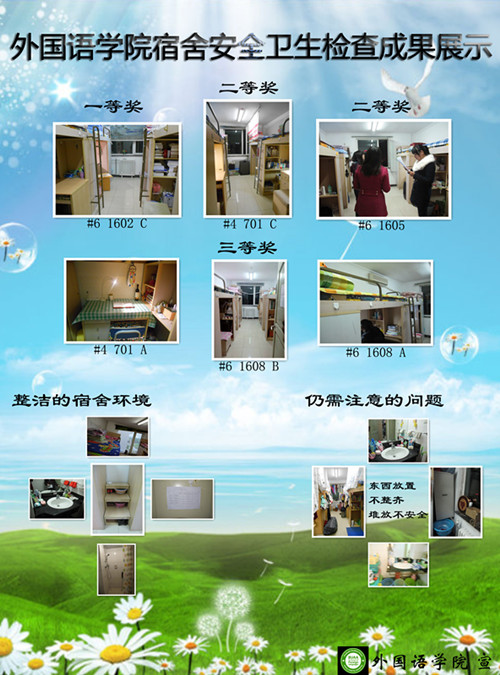 本次检查制定了严格的评分细则,包括宿舍内卫生、公共区域卫生、宿舍内务、宿舍文化以及宿舍安全自律等方面。在本次检查前,各个宿舍均积极准备,打扫宿舍卫生,并排除安全隐患。在检查过程中,大部分宿舍均卫生良好,物品整齐有序,无安全隐患问题,达到了宿舍卫生安全的相关要求。同时也有个别宿舍出现了东西太多,堆放不安全等问题。