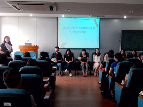 李丹老师首先介绍了几位学姐的基本情况、获奖经历以及就业情况。第一位介绍经验的学姐是2011级党支部书记,张丹学姐,她从学习、员工活动、实习、求职和读博等几个方面分享了自己的经验,并且就企业类型和职务为同学们指点迷津。第二位是语言学硕士李惠学姐,她以平均学习成绩90.3的高分位列语言学班第一,已被古腾堡大学录取,将赴德国攻读博士学位。除了优异的学习成绩和学术成果,她还利用假期时间去往了多个国家和地区,并鼓励同学们“读万卷书,行万里路”。接下来,张婉婷、余姚、韩露、方璐和张蔷蔷等几位学姐也就自己的学习和就业经验与同学们进行了交流,希望同学们找到自己的兴趣点,并为之不断努力,最终达到自己的目标。